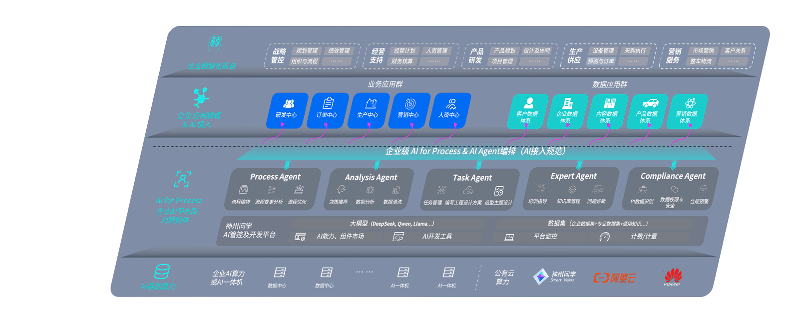 端到端的一站式AI工作空间深度融合了从企业战略规划到日常经营的全流程业务板块,,,定向解决车企内部领域多、、、、部门多、、、、链条长、、场景碎片化等难题,,支持车企快速构建以AI为核心的生产力写作体系,,实现任务执行与AI能力的无缝集成与交互